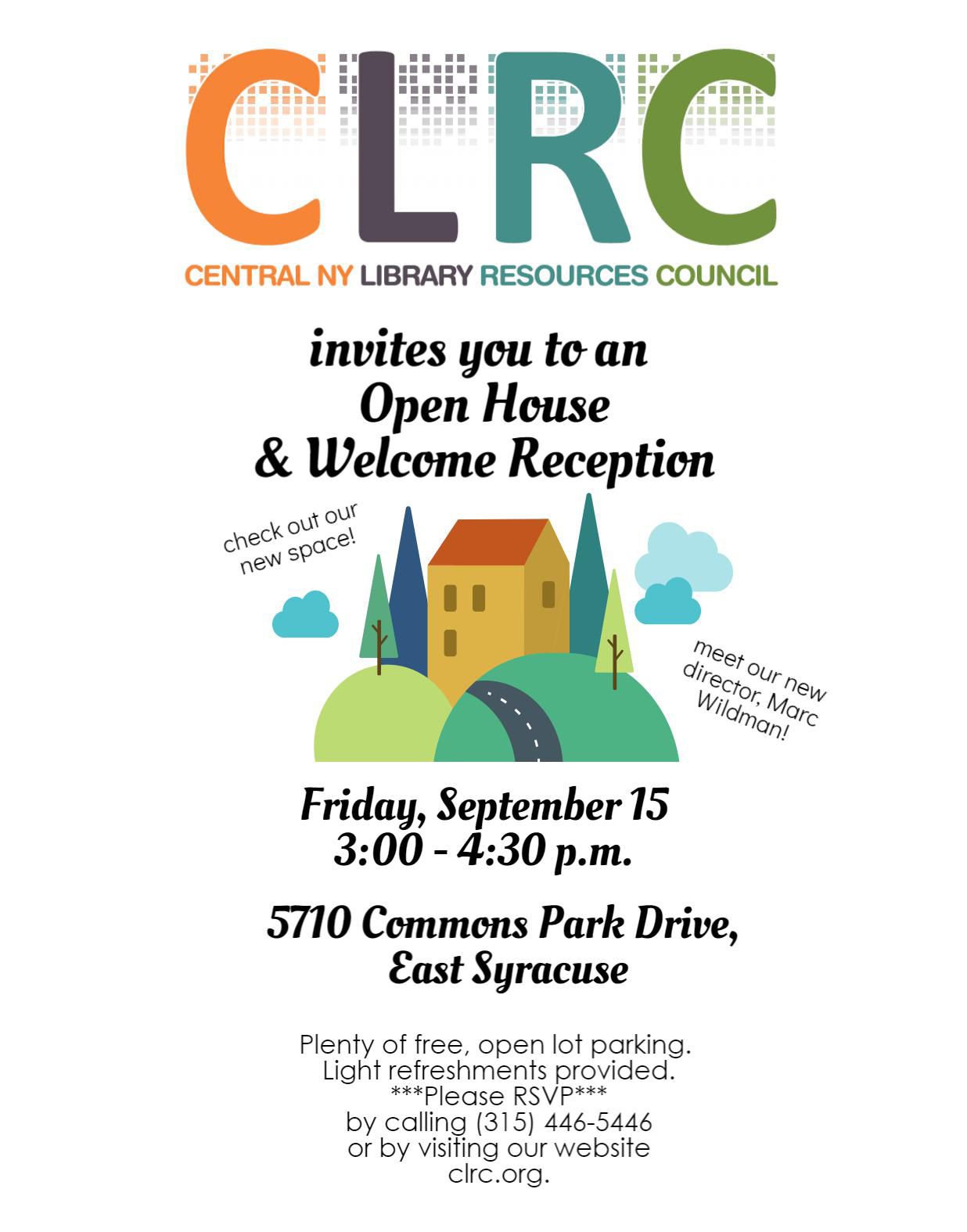 Join us on Friday, September 15 from 3 to 4:30 p.m. for an open house at our new location in Towpath Commons and a welcome reception for our new director, Marc Wildman. Light refreshments provided.