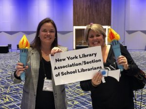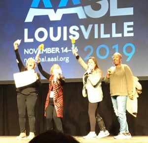 In November of 2019 I was able to attend the AASL 2019 conference in Louisville, Kentucky with the financial assistance of CLRC.  This was the first national library conference I have ever been able to attend. I was able to network with librarians from around the country (and one from Brazil) as well as the librarians from New York State.  I was able to help represent the NYLA-SSL at the Conference opening parade. This is where the different state organizations come and march across the stage.