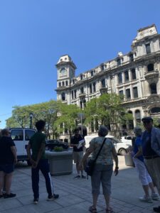 Once most of the research was complete, the tour was written. The tour took attendees from the Syracuse Weighlock Building to Clinton Square then on to Fayette Park with many stops along the way, including the sites of hotels that hosted conventions for women’s suffrage, places where suffragists gave speeches, and the site where Susan B. Anthony’s portrait was burned by people protesting her work. This walking tour covered how the Erie Canal changed life and work for women, sites where events occurred that helped to achieve suffrage, and a bit about the achievement of the 19th amendment and introduction of the Equal Rights Amendment.