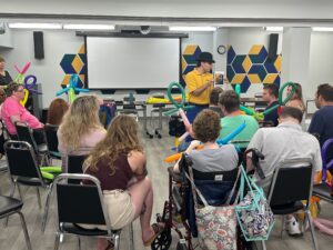 Between March-December 2024, Fayetteville Free Library hosted 12 programs for adults with intellectual and/or developmental disabilities and their mentors. We paid experts for their time to lead specific specialized, accessible activities. We sought input prior to holding these programs from the disability community to assess their needs and interests. This resulted in us offering a wide range of hands-on programs including art workshops, yoga, qi gong, karate, balloon tying, chocolate making, drum circle, and an Animal Myths program with the Zoo.