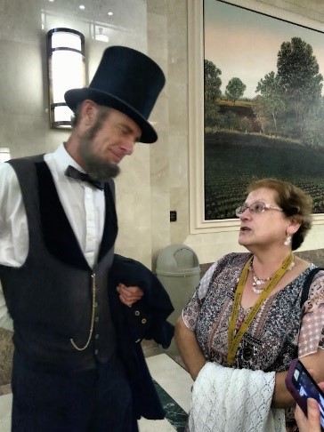 Because we were in Springfield IL, the keynote speaker was Abraham Lincoln. He spoke in the 1st person and gave us a summary of his life, from childhood to the Presidency. He spoke of the conflicts and difficulties he faced, but also amused us with his references to the world in our time, speaking of horseless carriages and cell phones. Another great speaker was author Elizabeth Berg. I had never read her work, but she spoke so eloquently and invitingly that I immediately pulled up my Mid York library account and ordered a couple of her books.