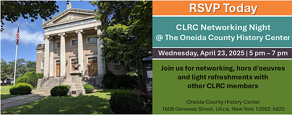 Join CLRC staff and members for a night of light refreshments and hors d’ouevres at the Oneida County History Center!