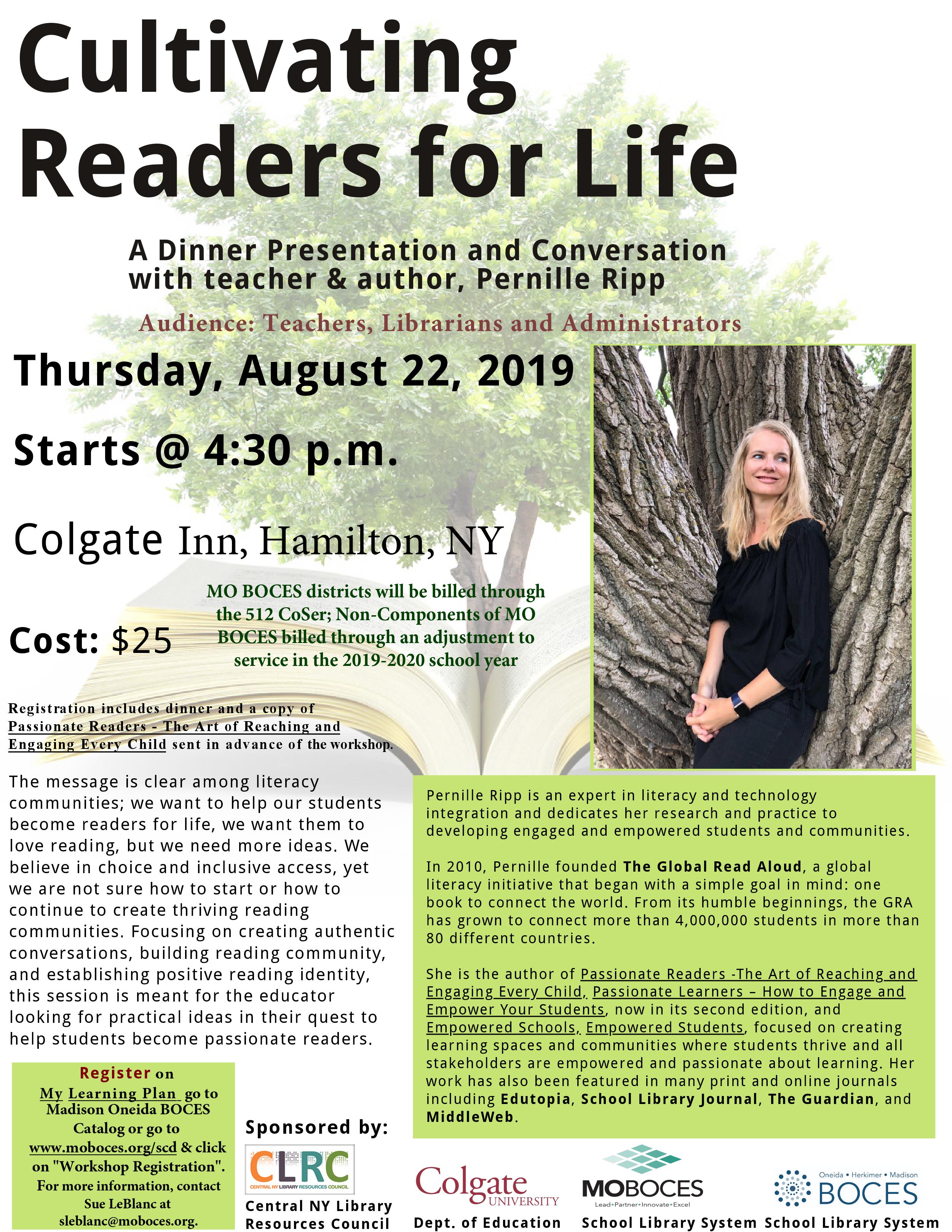 **$25 Registration includes dinner and a copy of Passionate Readers – The Art of Reaching and Engaging Every Child sent in advance of the workshop. Contact Sue LaBlanc at sleblanc@moboces.org for more information.**