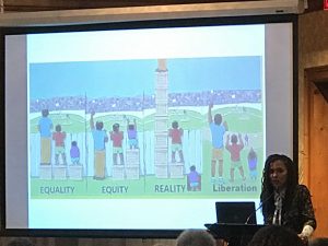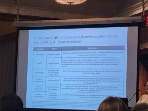 takeaways that I have from this conference are that equity, diversity, inclusion, and accessibility work is not conditional, optional, or should only rely on one person or someone from or with marginalized identities to do this work. From Deena Hayes-Green, Co-founder of the Racial Equity Institute spoke about looking at the individual, institutional, and structural/cultural level (the groundwater) in regards to racial equity. That racial inequity looks the same across systems. Some critical things that I left with are that we can’t do anything about something, we can’t see and that you can be diverse, but not racial equitable. DeEtta Jones, Co-founder of DeEtta Jones Associates, talked about courageous leadership. Asking questions such as Am I showing up in the world how I want to show up in the world? Are you trustworthy? Asking yourself how do you create and hold space for others to practice? Do you demonstrate the ethical principles that you have/hold? That we need to work on being anchored to inspiration. It takes emotional intelligence, consistency, cultural competency, equity-oriented, in service of others and understanding how your values impact your behavior and more.